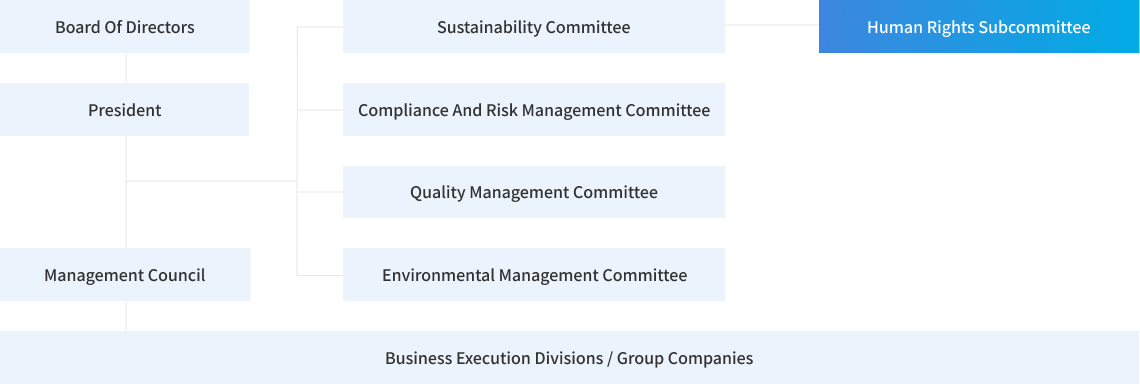 As an organization responsible for implementing activities related to human rights issues, the Sakai Chemical Group has established a Human Rights Subcommittee.