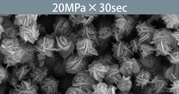 サンプル10gを容器に入れ、2MPa × 30sec で加圧し、成型する。その成型物を 10cmの高さから落下させ、成型物が割れるまでの落下回数を計測する。